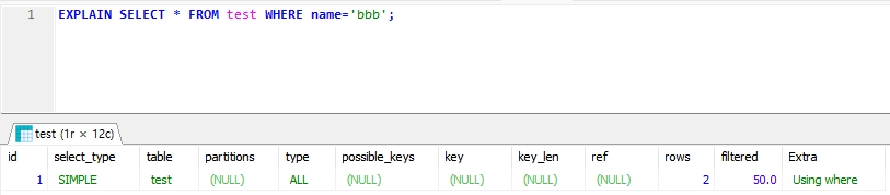 - 쿼리 앞에 EXPLAIN 키워드를 붙여서 실행