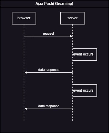 - 브라우저가 명시적으로 요청하지 않아도 웹 서버가 데이터를 브라우저에 푸시할 수 있는 웹 어플리케이션 모델