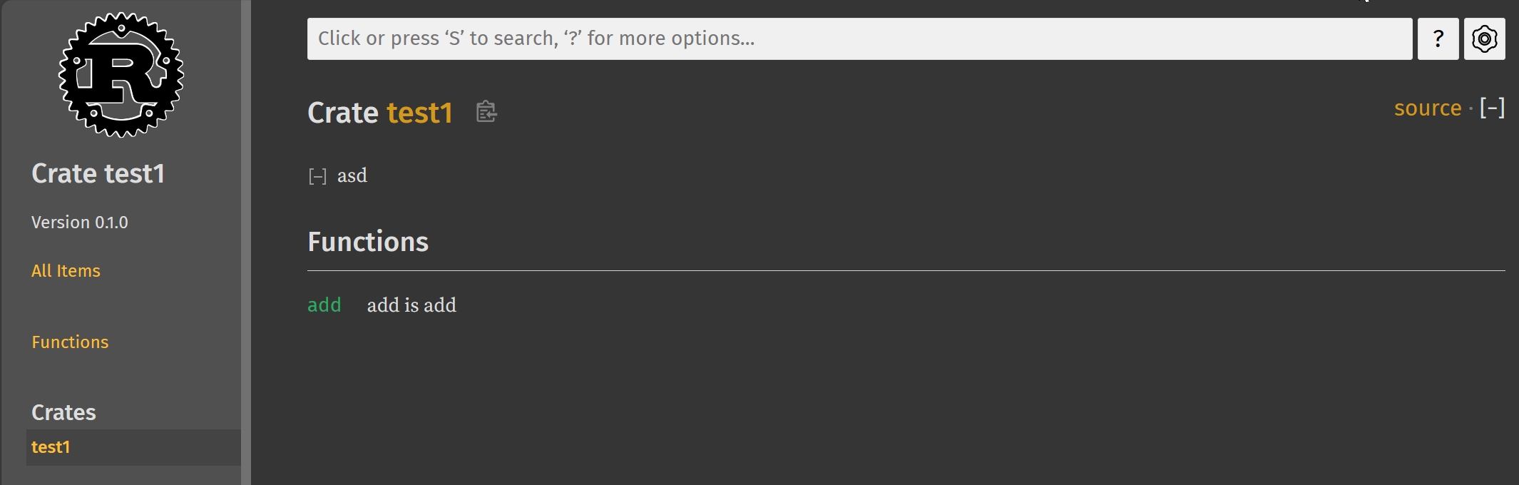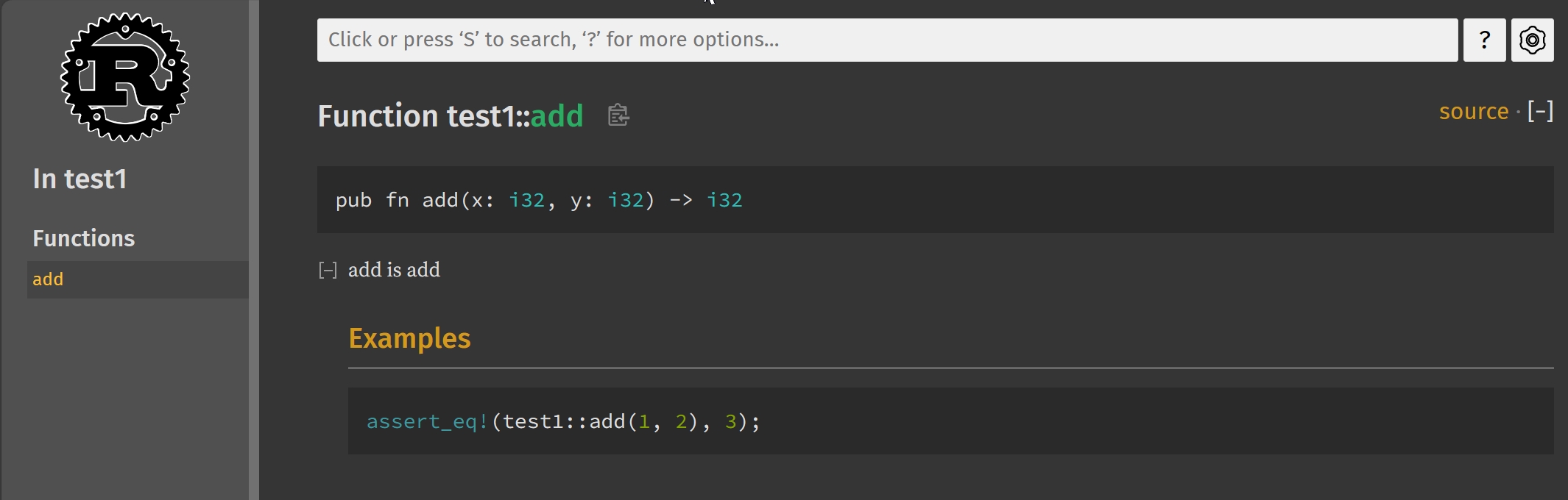 cargo test를 수행하면 주석에 있는 에제 코드가 테스트로서 실행