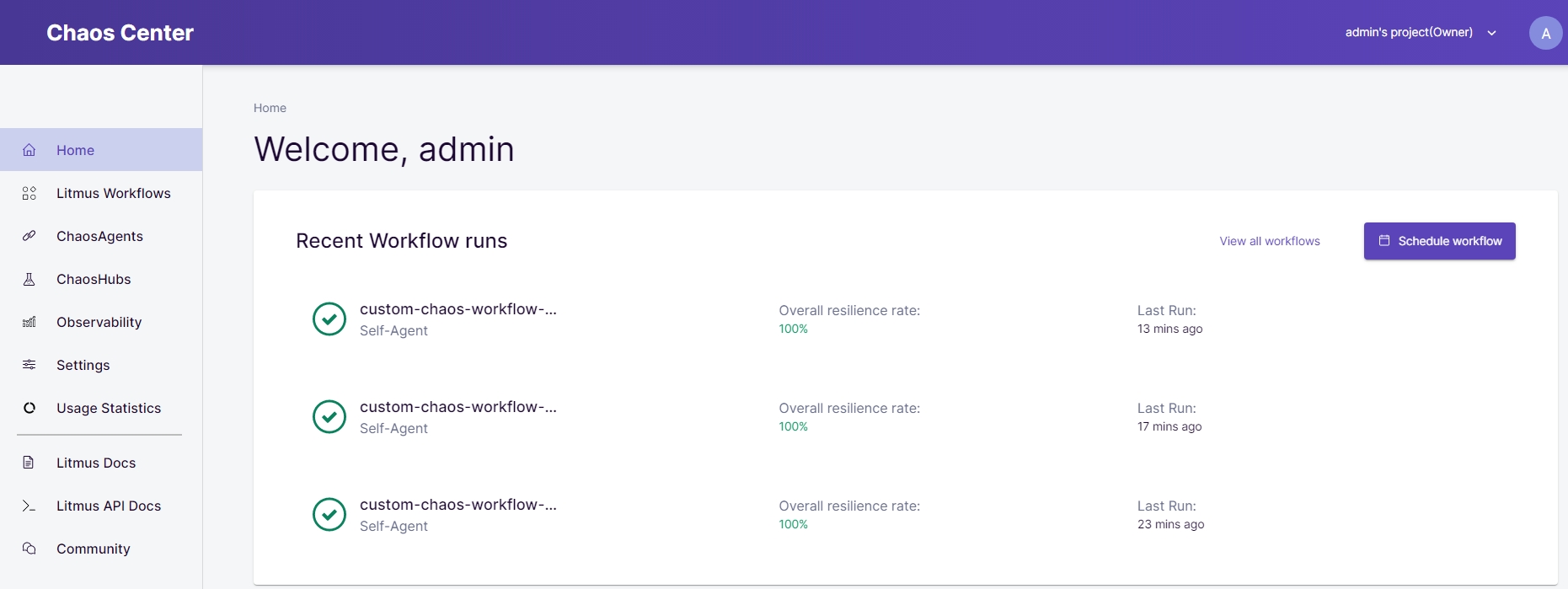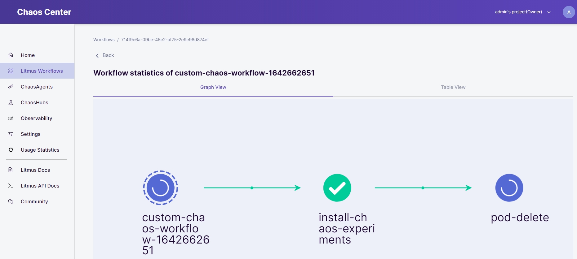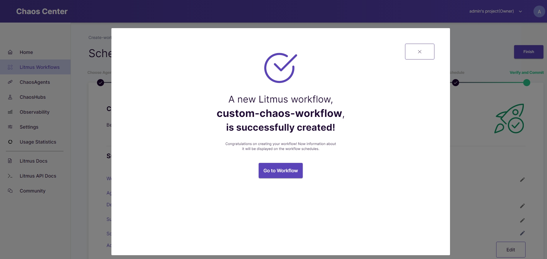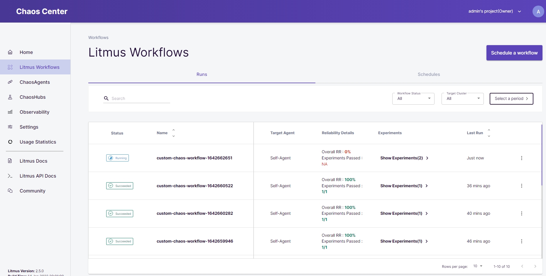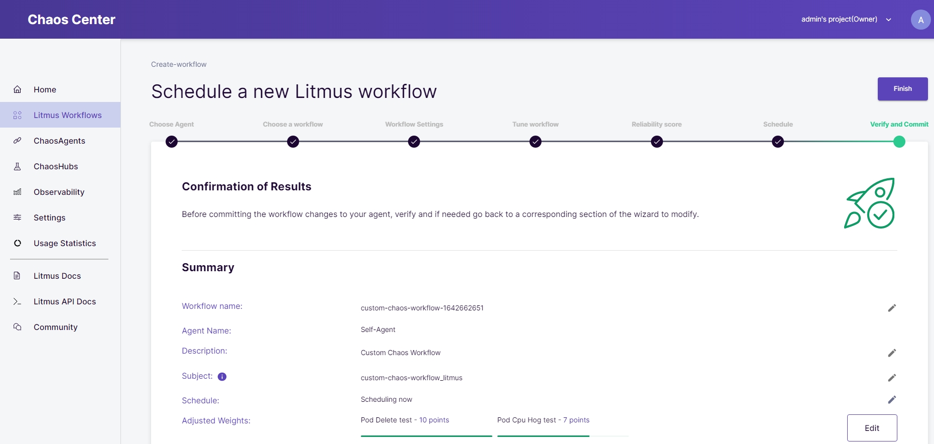 - Create a new workflow using the experiments from ChaosHubs 선택 후 Next 클릭